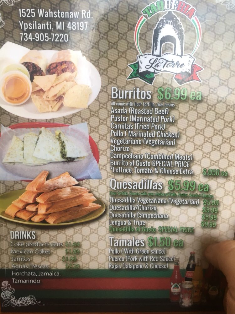 La Torre Taqueria, a Mexican restaurant located at 1525 Washtenaw Ave in Ypsilanti, MI, offers a wide range of delicious options for both vegans and vegetarians. This casual dining spot provides a variety of amenities such as delivery, takeout, and even catering services. With options for Happy Hour specials and a full bar, La Torre Taqueria is a great place to gather with friends or enjoy a family meal. The restaurant also offers outdoor seating, Wi-Fi, and waiter service for added convenience. Whether you're in the mood for a quick lunch or a relaxing dinner, La Torre Taqueria has something for everyone. Don't forget to try their signature dishes and experience the flavors that make this place a must-visit in the area.